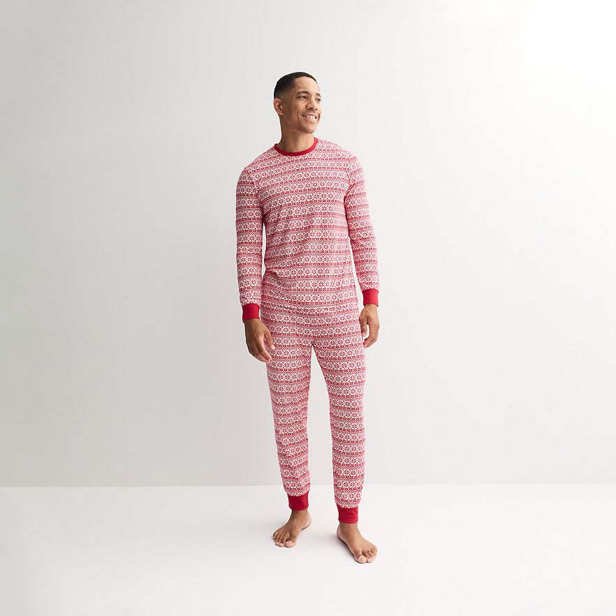 Wrap yourself in cozy holiday cheer with this Men's Jammies For Your Families® Pajama Set. Designed with comfort and festive flair in mind, this matching top and bottom set features a classic Fairisle pattern updated with joyful seasonal colors, perfect for creating picture-perfect family moments.