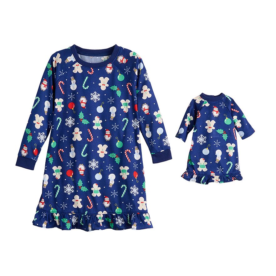Double the charm and twice the cozy! This Girls Jammies For Your Families Pajama Gown & Matching Doll Gown Set brings heartwarming holiday style to bedtime. Featuring a sweet holiday pattern, this adorable nightgown set lets your little one and her favorite doll share matching seasonal looks for unforgettable holiday moments.