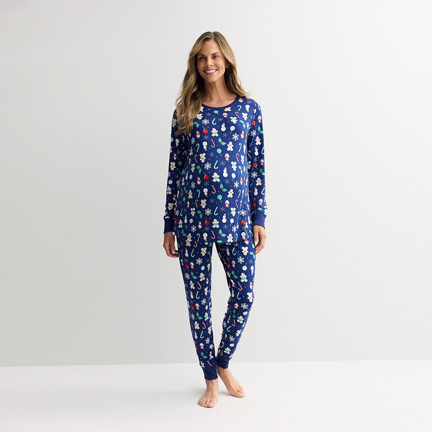 Get ready to snuggle up this holiday season with the cozy Women's Petite Jammies For Your Families pajama set. Featuring a delightful Holiday Jumble print and soft, stretchy fabric, this charming two-piece set is perfect for lounging, napping, or capturing those festive family photos, all while keeping you stylishly comfortable.