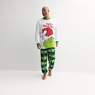 Get cozy with a touch of holiday mischief in this Men's Jammies For Your Families Grinch “Happy Wholidays” Pajama Set. Featuring everyone’s favorite festive grouch from Dr. Seuss’ How the Grinch Stole Christmas!, this 2-piece set brings playful style and all-day comfort to your seasonal lounging.