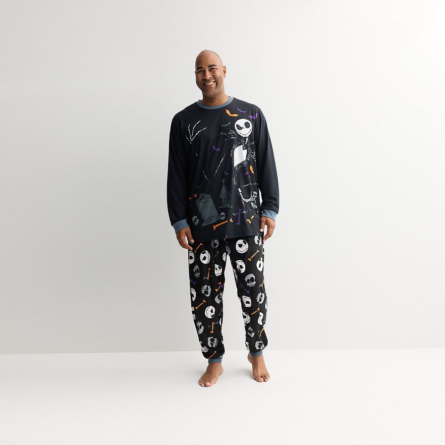 Get ready for cozy nights with this charming two-piece pajama set from B&T, featuring a fun Jack Skellington design that brings a touch of whimsy to bedtime. Crafted for big and tall fits, this long sleeve top and matching pajama bottoms are designed to be snug yet comfortable, allowing for easy movement while lounging or drifting off to sleep. © Disney