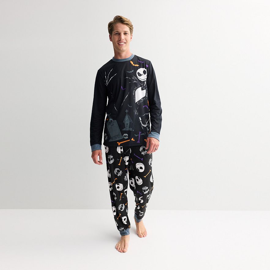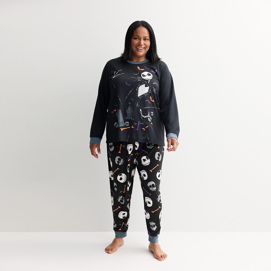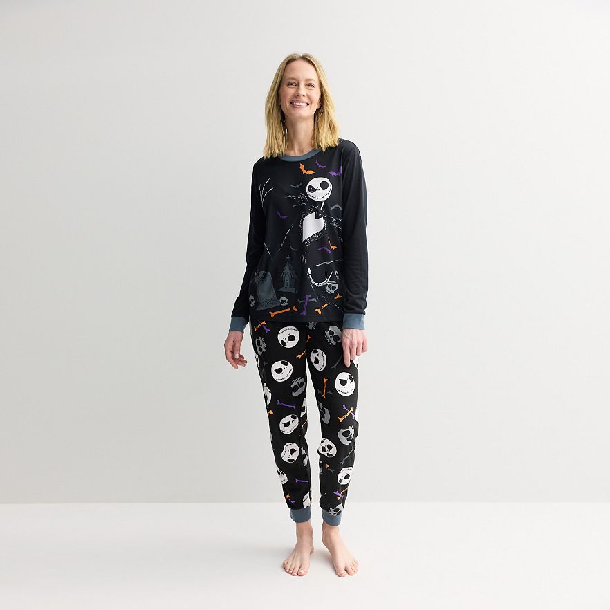 Embrace the spooky season with the comfort of this women's Halloween pajama set, featuring a cozy long sleeve top paired with playful pants adorned in fun Nightmare Before Christmas designs. Perfect for nights filled with curling up for movie marathons or trick-or-treating dreams, this set ensures a snug fit that keeps you relaxed and ready for sweet slumbers. © Disney