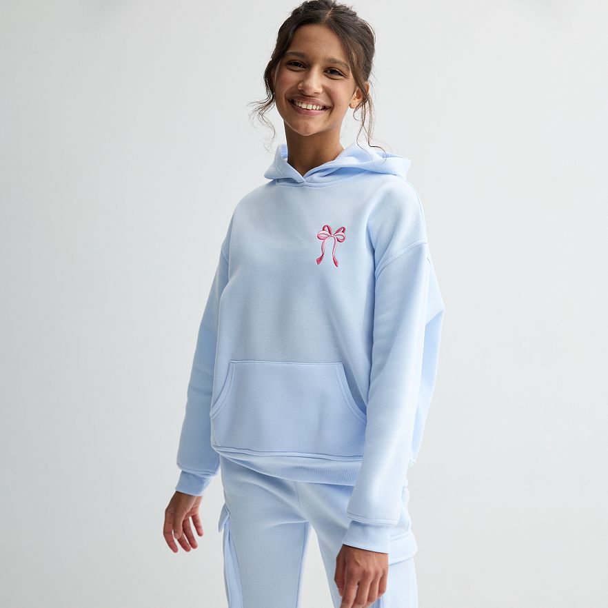Wrap your little girl in the cozy charm of Harper & Ivy's hoodie, featuring an oversized fit that's both comfy and stylish. The adorable bow graphic adds a playful touch, making it perfect for school, playdates, or lounging at home.