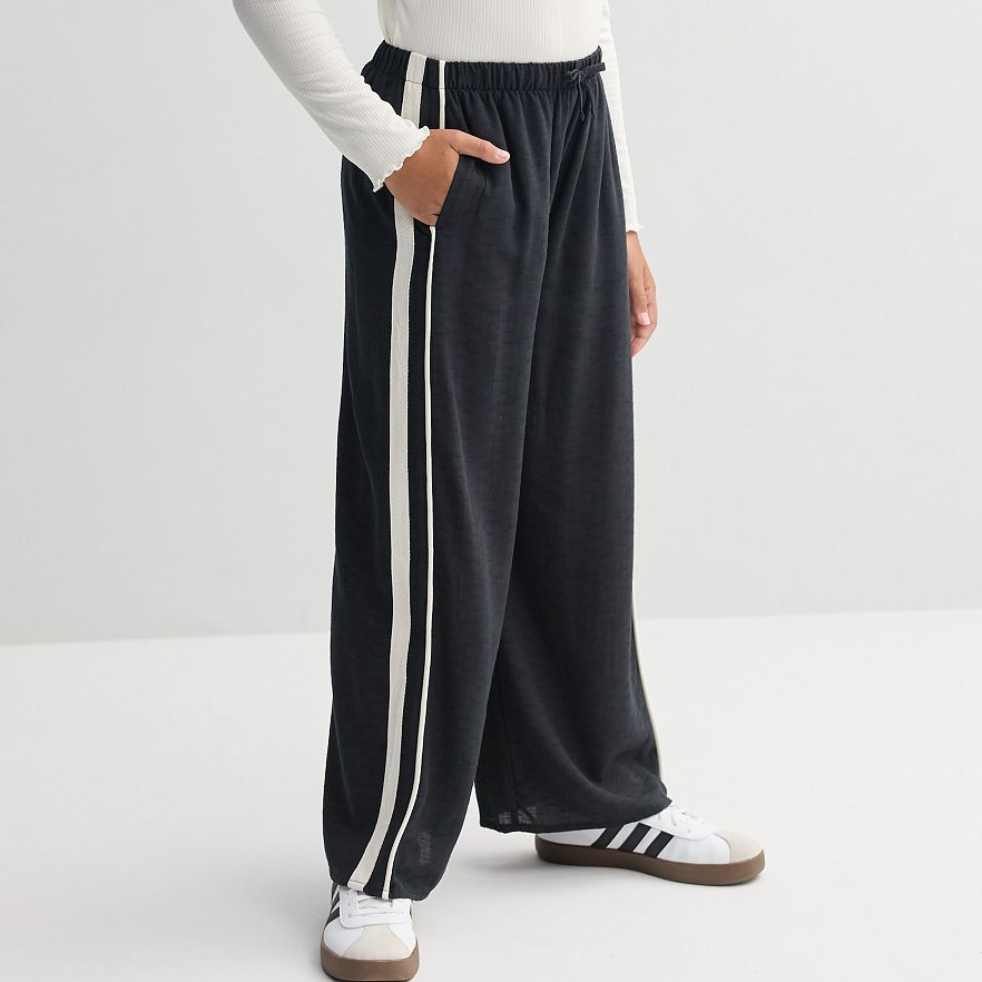Let her embrace both comfort and style with these trendy track pants from eyeshadow. Featuring sporty racer stripes, they offer a relaxed fit that allows for effortless movement, making them perfect for playdates, after-school adventures, or cozy days at home.