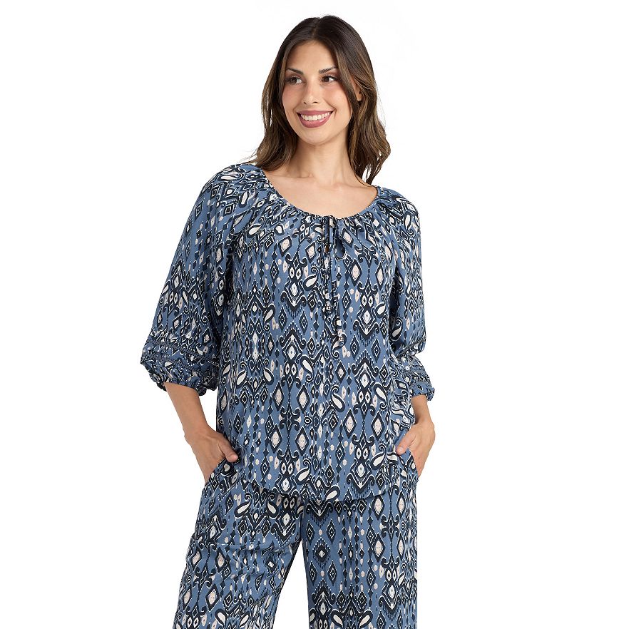 Step into effortless style with this charming peasant top from AB Studio. With its playful pintucks and whimsical three-quarter sleeves, it's the perfect piece to elevate casual outings or cozy coffee dates, all while keeping you feeling as fabulous as you look.