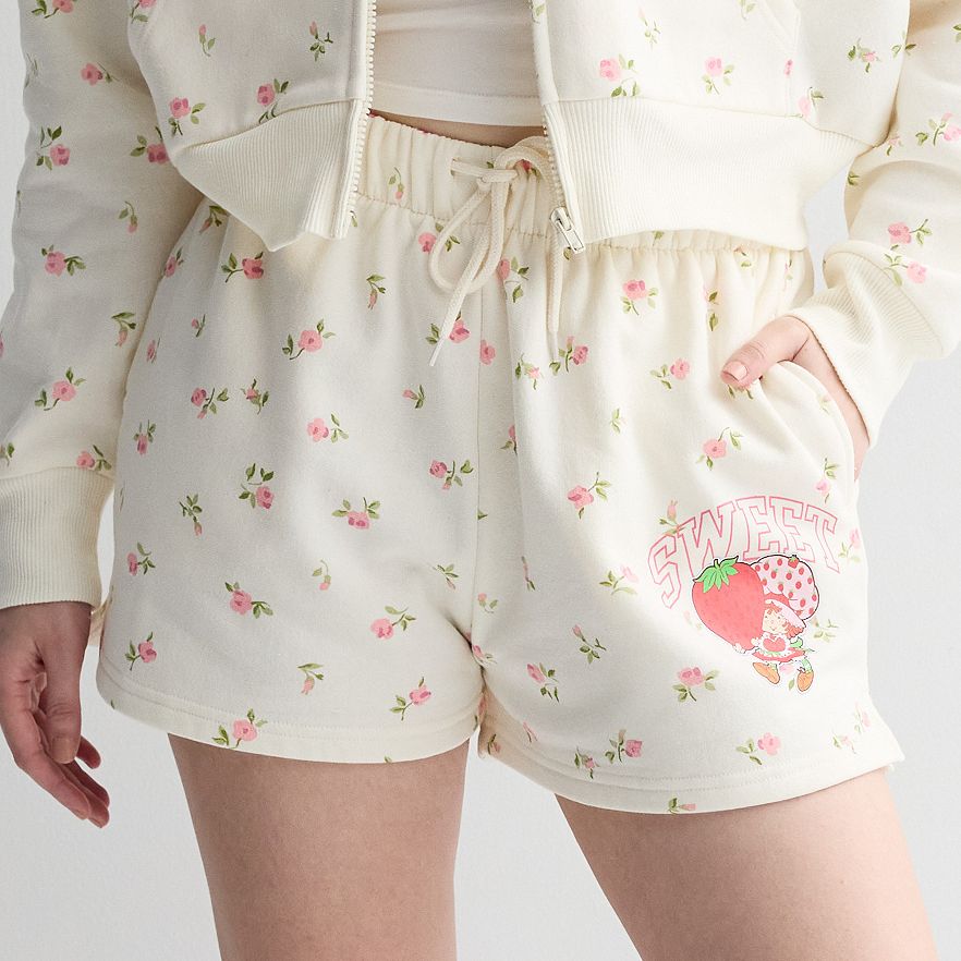 Juniors' Strawberry Shortcake Graphic Hoodie & Shorts Matching Set