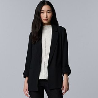 Layer on a fashionable look with this Women's Simply Vera Vera Wang Linen Roll Tab Blazer.