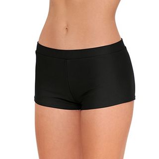 You'll love the elegant style of these juniors' SO Cross Over High Leg High Waist Swim Bottoms.