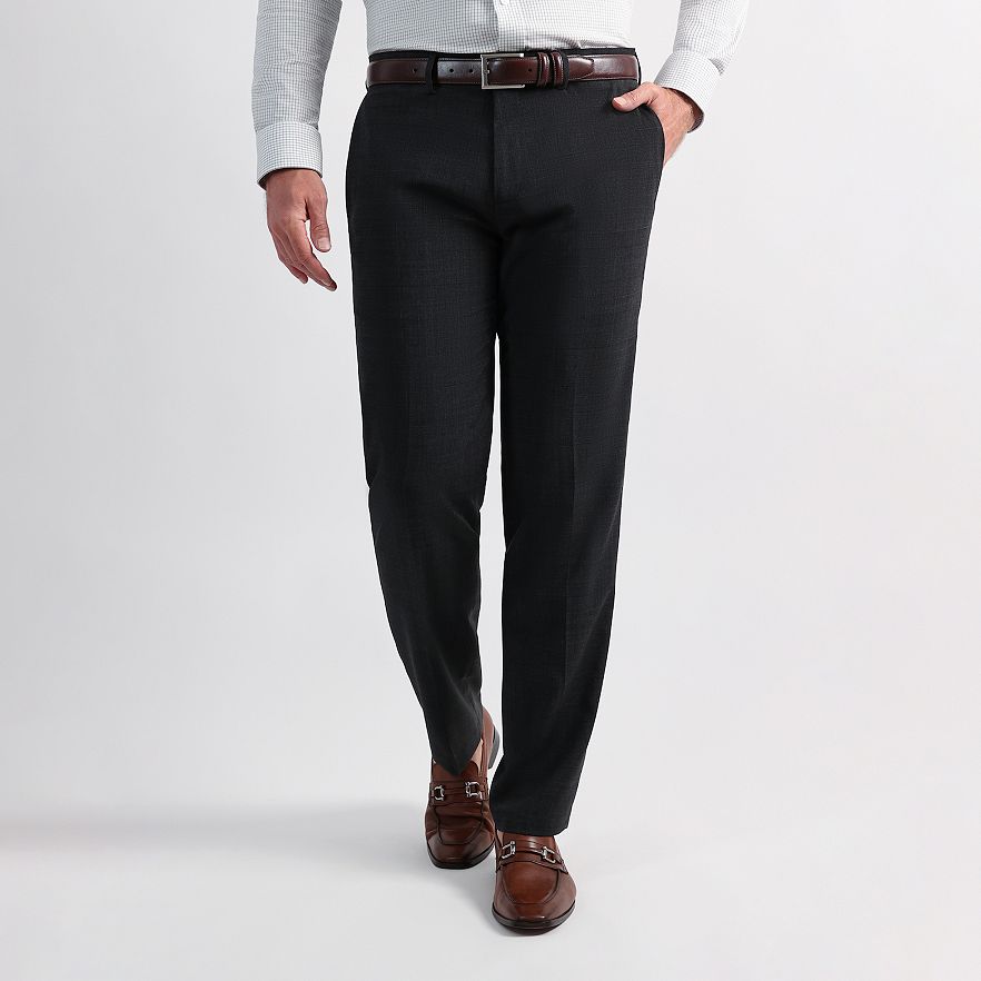 These Haggar pants combine luxurious softness with stretch for unmatched comfort. Featuring a tailored fit, elegant windowpane pattern, and half-lining to the knee, they offer a polished, refined look perfect for any special occasion.