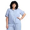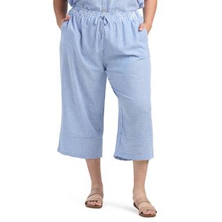 Plus Size AB Studio Wide Leg Crop Pants & Armhole Collared Front Tie Hem Shirt Matching Set