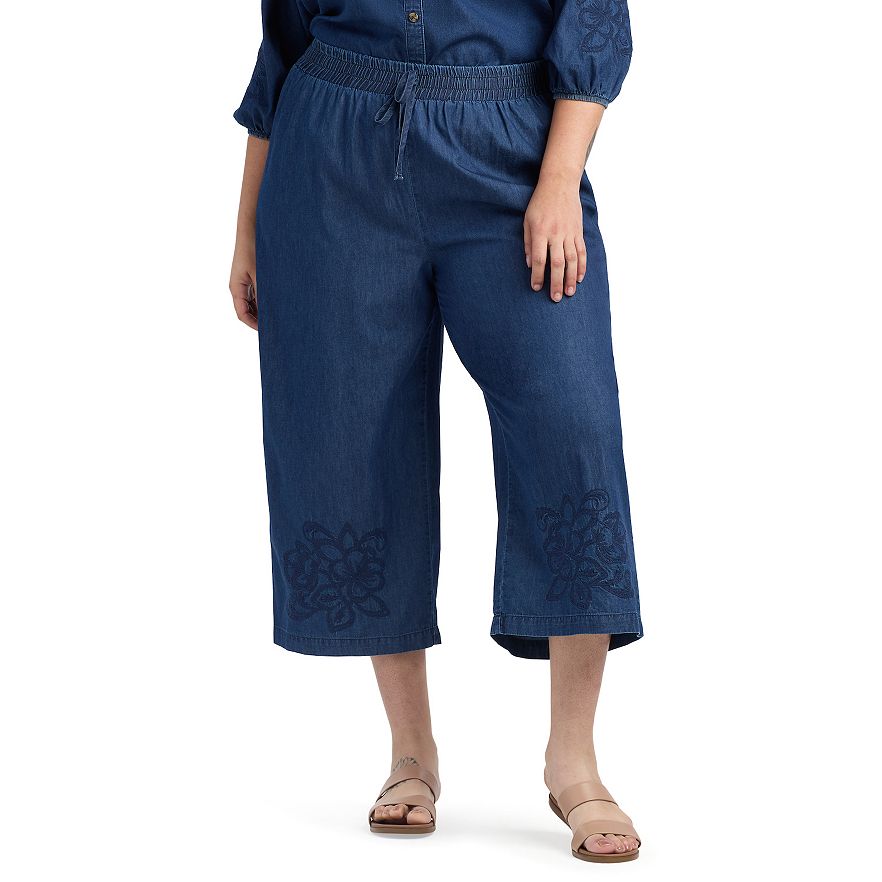 Plus Size AB Studio Wide Leg Crop Pants & Three-Quarter Blouson Sleeve Tie Front Top Matching Set