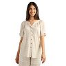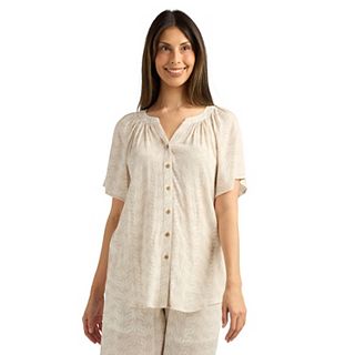 Women's AB Studio Short Sleeve Flutter Collar Split Top & Pull-On Wide Leg Crop Pants Matching Set