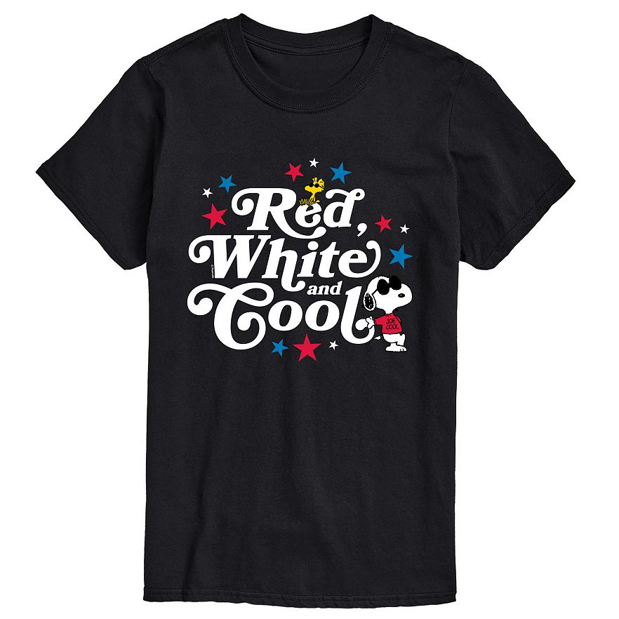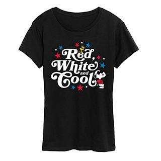 Step into style and nostalgia with this Peanuts graphic tee that features everyone's favorite beagle, Snoopy, declaring himself "Red, White and Cool." Perfect for casual outings or just lounging at home, this shirt infuses a bit of playful fun into your wardrobe while showcasing your love for classic comic charm.
