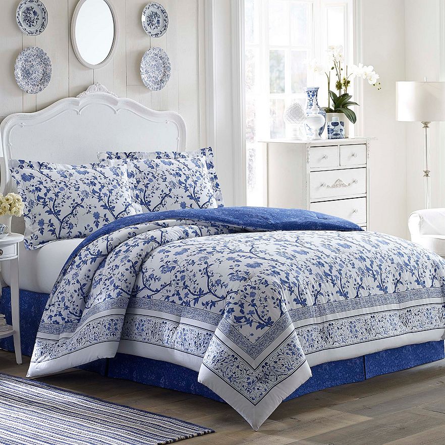 Create a beautiful bed with this Laura Ashley Lifestyles Charlotte bed set. In blue.