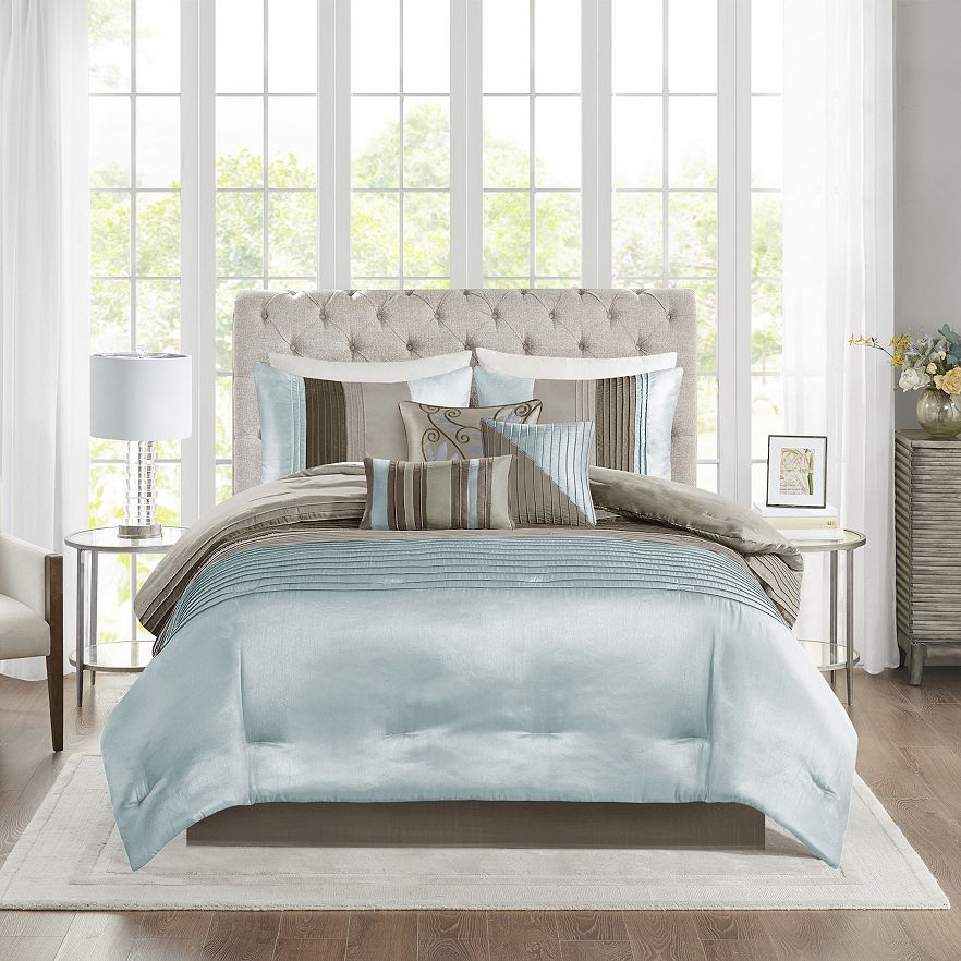 - Transitional style 7 piece comforter with pintucking and embroidery details